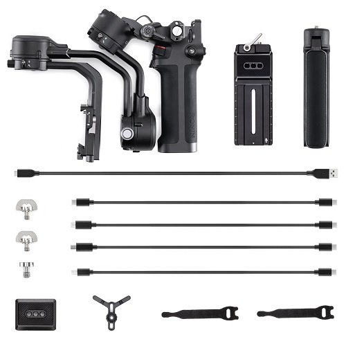 ●セット内容:ジンバル(内蔵バッテリー)、USB-C 充電ケーブル (40cm)、レンズサポート、クイックリリース プレート (Arca-Swiss/Manfrotto用)、カメラライザー、マルチカメラ制御ケーブル(USB-C、30cm)、マルチカメラ制御ケーブル (Sonyマルチ、30cm)、マルチカメラ制御ケーブル (Micro-USB、30cm)、マルチカメラ制御ケーブル (Mini-USB、30cm)、面ファスナーストラップ、D-Ring カメラ取り付けねじ 1/4-20、ねじ 1/4-20、延長用グリップ/三脚(プラスチック製)